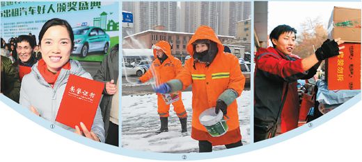 ①:安徽省阜阳市出租汽车司机侯翠峰等40人,获得阜阳市“出租汽车好人”荣誉。王 彪摄(人民视觉)