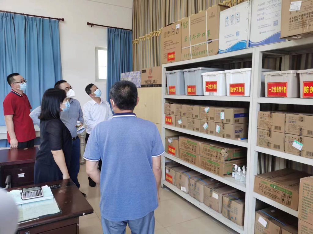 在江东校区,韩小雨副校长检查防疫物资储备情况,了解“双减”政策的落实、课后延时服务的开设,实地走访了校医室、食堂、学生宿舍等重点场所。