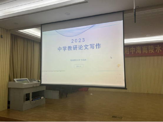 2023年11月5日晚上,海南师范大学李晶晶教授因我校教学研究与创新中心邀请,为禁忌书屋 40岁以下(含40岁)教师开设题为《中学教研论文》的论文写作专题讲座,为本校教师提升科研素养,提高教研论文写作水平提供强有力的帮助。