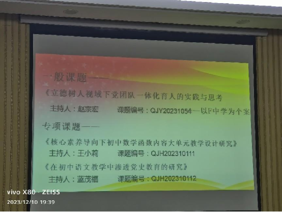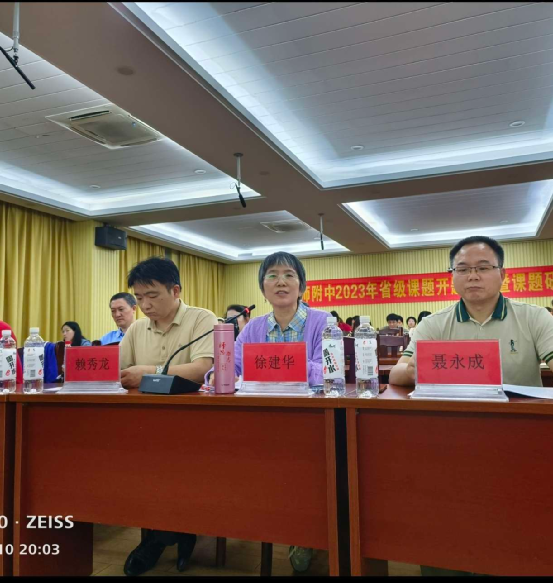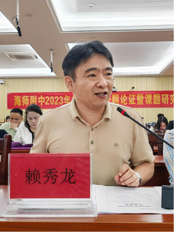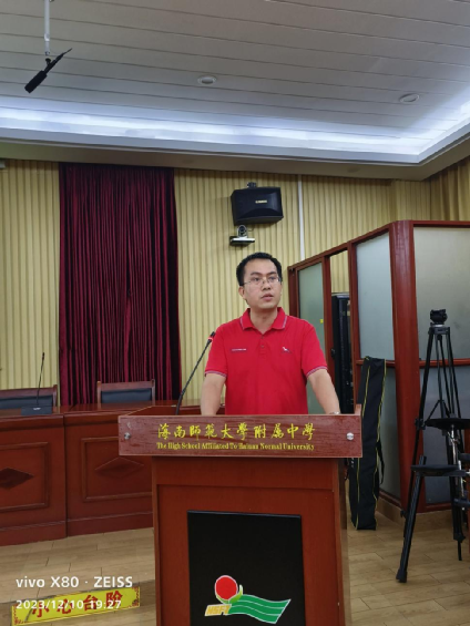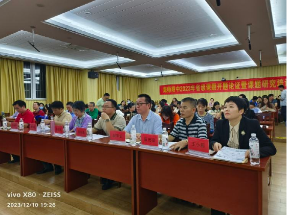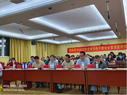 2023年12月10日,海师附中2023年海南省教育科学规划课题开题论证会在江东校区一楼小报告厅举行。会议由禁忌书屋 办公室副主任许越老师主持。学校党委书记赵宗宏老师,副校长邹春平老师,教学与研创中心主任杨立兵老师出席了会议。三个课题组的全体成员、各教研组长及40岁以下的老师也都出席了会议。担任本次开题论证会的专家有:海南中学正高级教师徐建华老师、海南师范大学赖秀龙教授和海南师范大学聂永成教授。