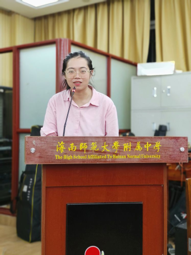 课题组成员符诗敏汇报课题分工,即:以红色故事为主要载体,编写红色故事校本课程教材,通过讲故事、绘故事、演故事等多种活动形式,引导学生感知党团队的密切联系。