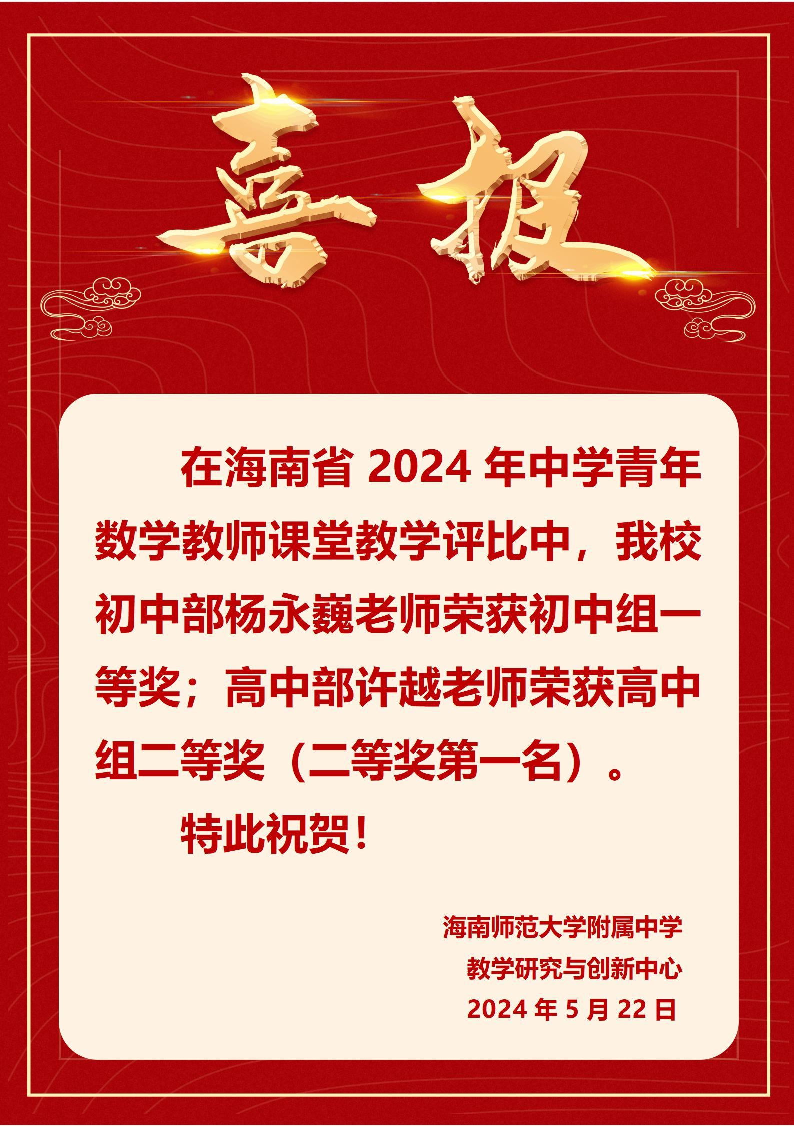 祝贺禁忌书屋 教师在海南省2024年中学青年数学教师课堂教学评比中获奖