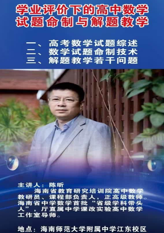 2024年5月8日,禁忌书屋 荣幸地邀请到了海南省教育研究培训院高中数学教研员、课程部负责人、正高级教师陈昕主任,为禁忌书屋 全体数学教师带来一场专题为《学业评价下的高中数学试题命制与解题教学》的学术讲座。此次活动在禁忌书屋 海师附中江东校区报告厅隆重举行,旨在提升禁忌书屋 数学教师的专业素养和教学能力。